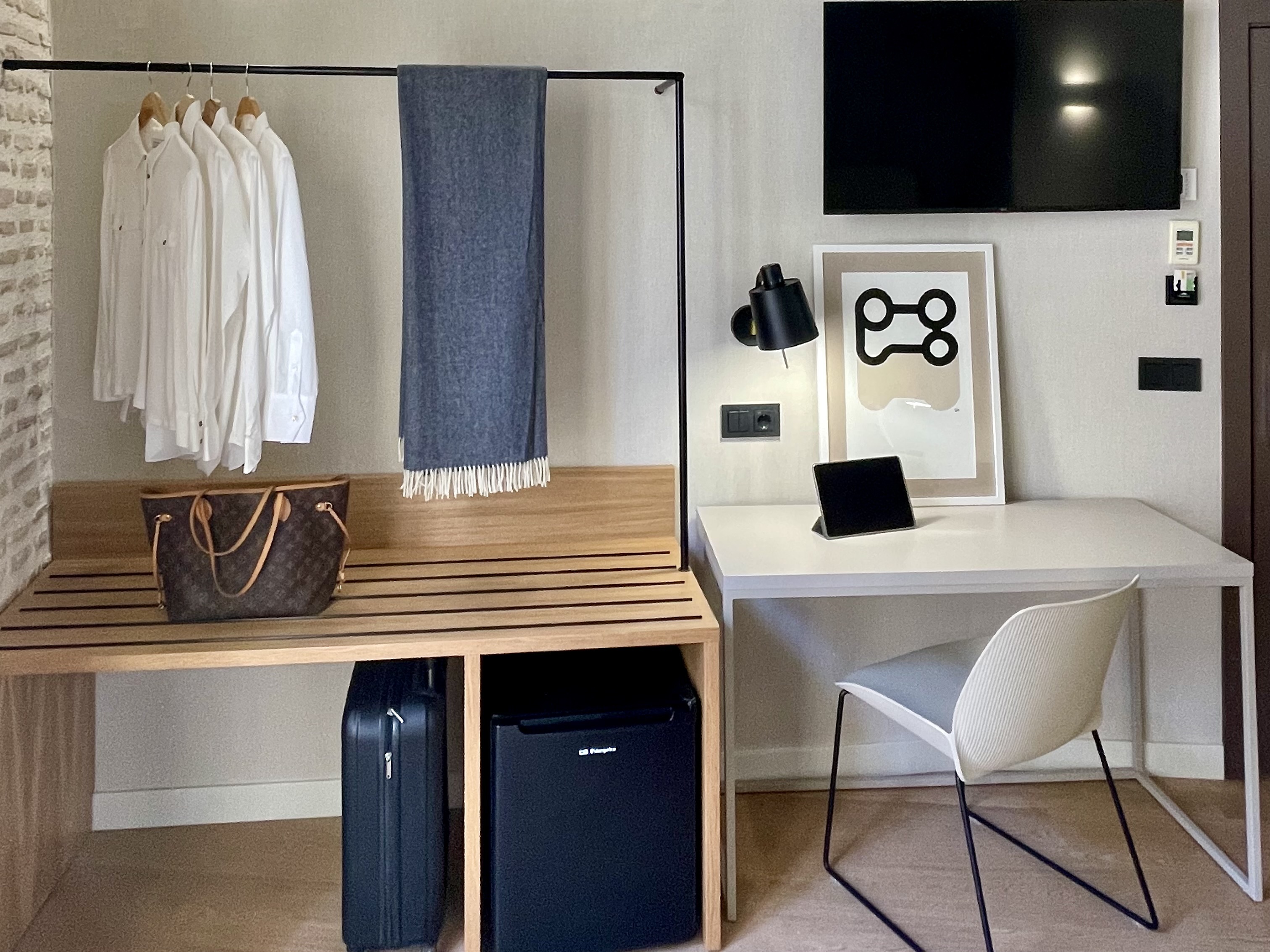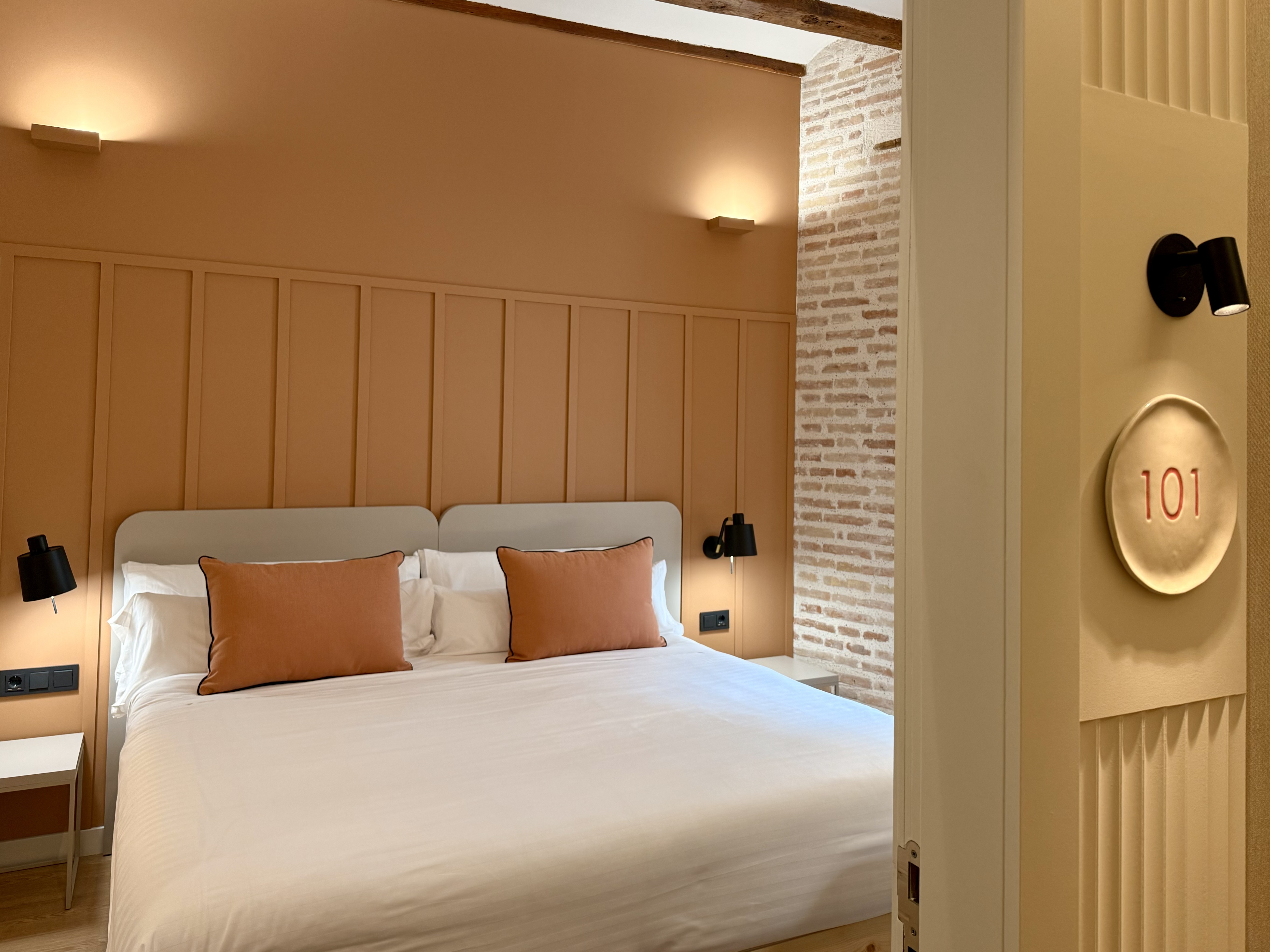 Esta amplia habitación triple está diseñada para ofrecer mayor comodidad y espacio, ideal para quienes buscan una estancia relajante. Cuenta con una gran ventana orientada a un patio interior que permite la entrada de luz natural y garantiza un ambiente tranquilo. Está equipada con nuevos colchones SMATTEX Luxury Beds para un descanso óptimo. El baño dispone de ducha a ras de suelo con diseño cerámico. Incluye TV de pantalla plana, WiFi gratuito, aire acondicionado y calefacción.
